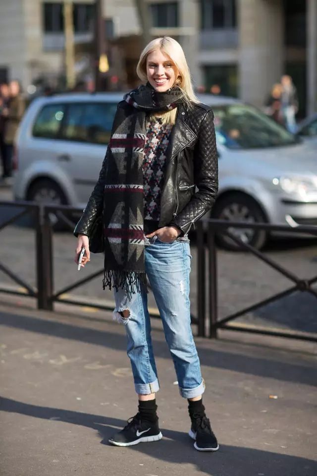 9分高腰牛仔裤相信你今年一定买了,冬天搭配乐福鞋照样穿,加双袜子就行了。