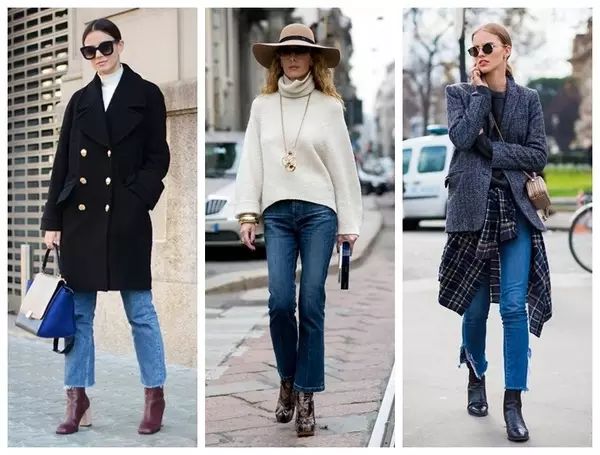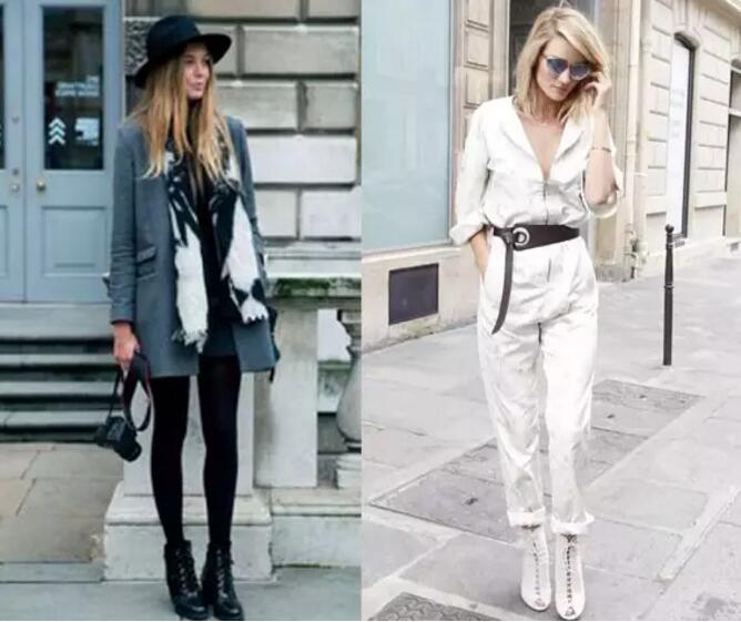 除蓝色牛仔裤以外,当你的下装是深色系时,搭配深色短靴。浅色系同理。这样模糊了鞋子和腿部的界限,相同的颜色会使腿长在视觉上得到延伸。千!万!不!要!穿一条黑色窄脚裤配一双浅色的短靴!这样就像把腿劈开了两段,且给人头重脚轻的感觉。要是光腿的话,建议是搭配裸色靴。
