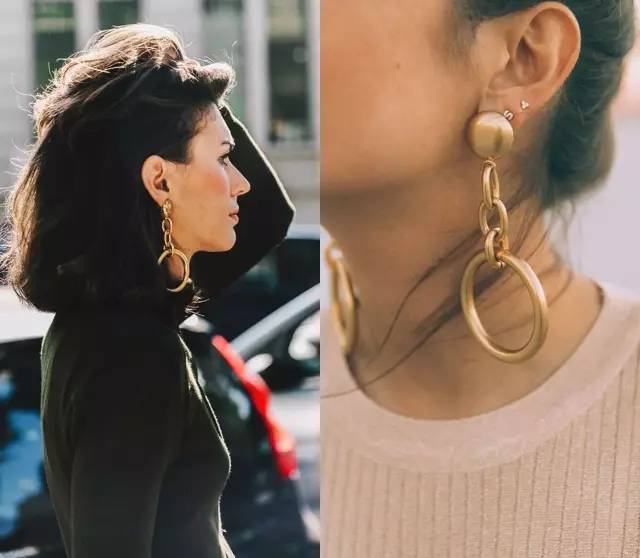 更酷的是这种线圈结合的款式,怎么组合都好看,没有环形耳环那么单调,线条还能修饰脸型,圆脸姑娘也不带怕的。