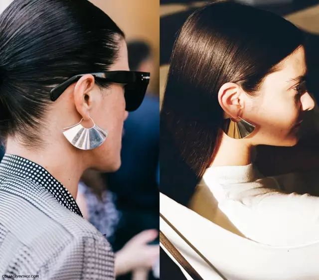 片状耳环在设计感上有种很超前的风格,金属质感更让人垂帘。扇形和圆片形状较多,随意搭配,不挑脸型。虽然形状简单,但却非常百搭。适合所有脸型,如果你搞不清楚自己是什么脸型就来这一款。