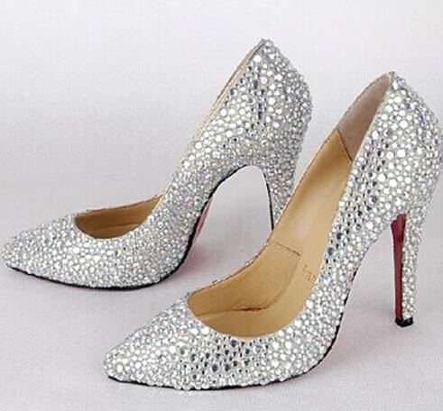 婚纱照结婚鞋子尖头高跟鞋细跟灰姑娘水晶鞋婚鞋新娘鞋水钻单鞋女