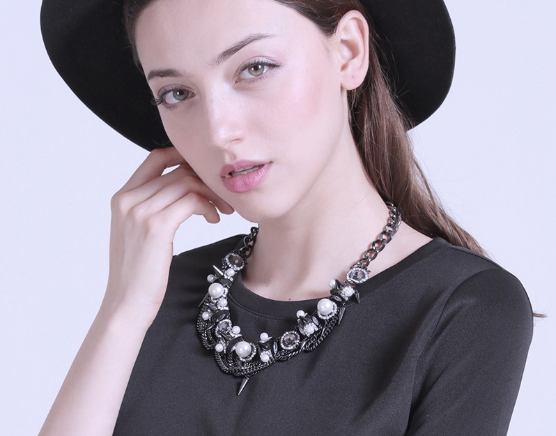 摇滚机车风格席卷T台,铆钉无处不在,几乎成为了设计师都在盲从的潮流,每个品牌都要搭上铆钉装饰的顺风车。 酷酷的铆钉项链不仅是装饰,当遇到危险的时候,更可以当武器使用呦,哈哈。