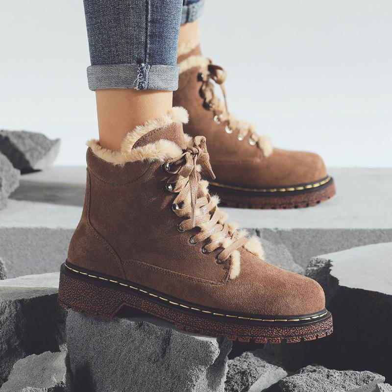 MASOOMAKE2017新款保暖加绒马丁靴女英伦风 冬季系带雪地靴女棉鞋