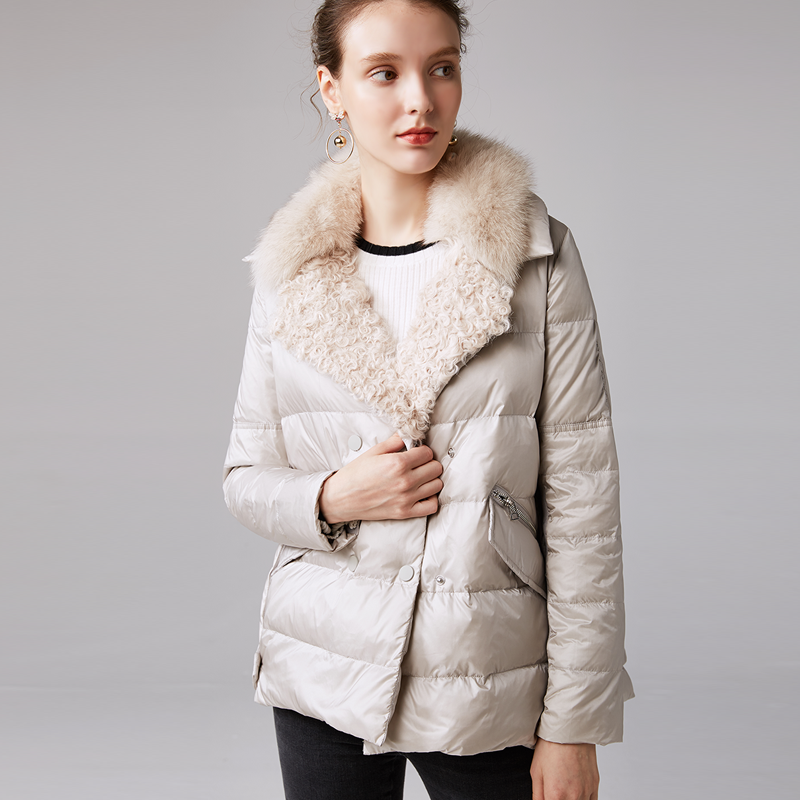 杰唯卡jvvcca style 双排扣羽绒服女毛领加厚短款外套11AC740612