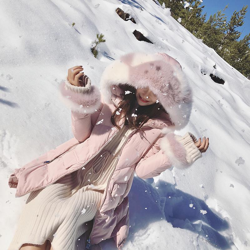羽绒服女中长款2017冬装新款韩版宽松显瘦个性拼色超大毛领外套潮