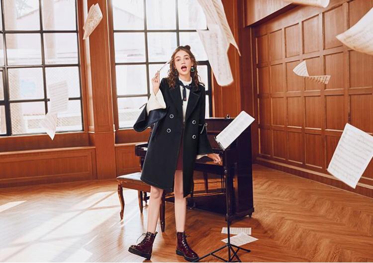 4. 原宿风过膝宽松呢大衣。时尚保暖的呢子大衣,通勤的风格很是百搭,对于选择困难症的菇凉们来说,有件百搭的呢子衣很是不错,宽松的版型也是完全不挑身材,很是不错。
