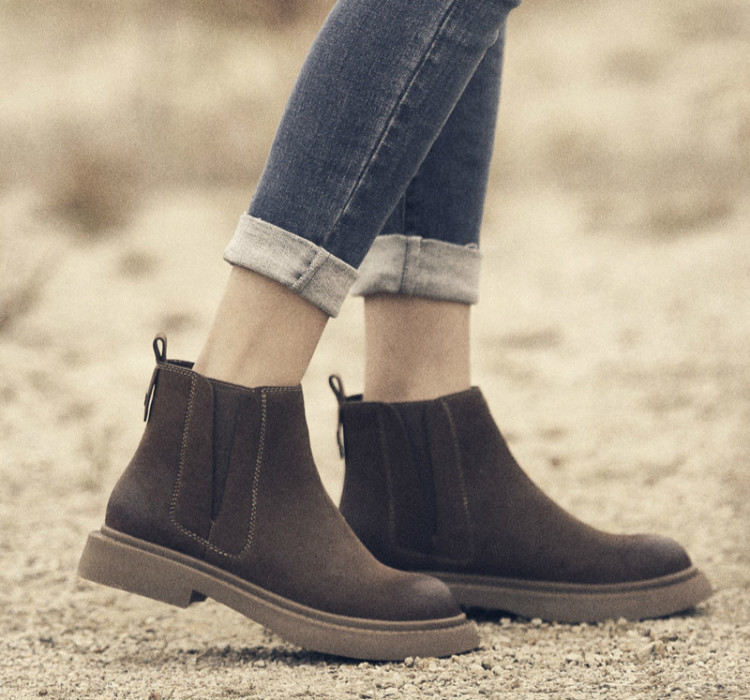3. 小猫跟裸靴。切尔西短靴一直是冬日里的百搭利器,层次感十足的外观配上复古味道十足的大衣,你会被自己迷住的,英伦范十足的它配上摩登的磨砂面,可以说是很有型了。