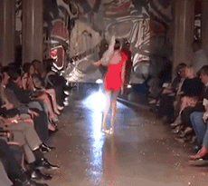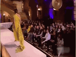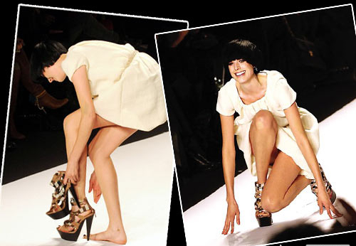 而女模特们最常遇见的情况,便是摔倒。有时候是因为高跟鞋过高,有时候则是因为地面太滑。