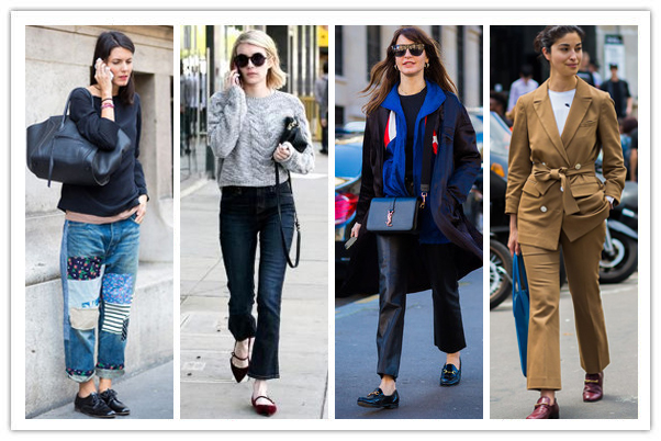 越来越多的姑娘喜欢穿干练又帅气的裤装了,加上今季阔腿裤、“校服裤”、西装裤等等的流行,让越来越多的小女生转变为“大女人”。再加上舒适性是当代女性穿着打扮的首选,自然在鞋履的选择上也要解放双脚才行,所以想要率性十足的姑娘可以参考哦!