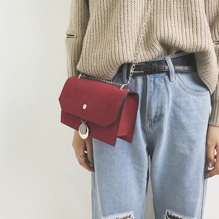 酒红色与金属链条的搭配简直不要太美~小方包的包身设计挺括,无需担心手机或者小饰品被无意间压到~圆圆的大小不一的金属片也是完美的CP,让整个包包的耐看度立刻up!