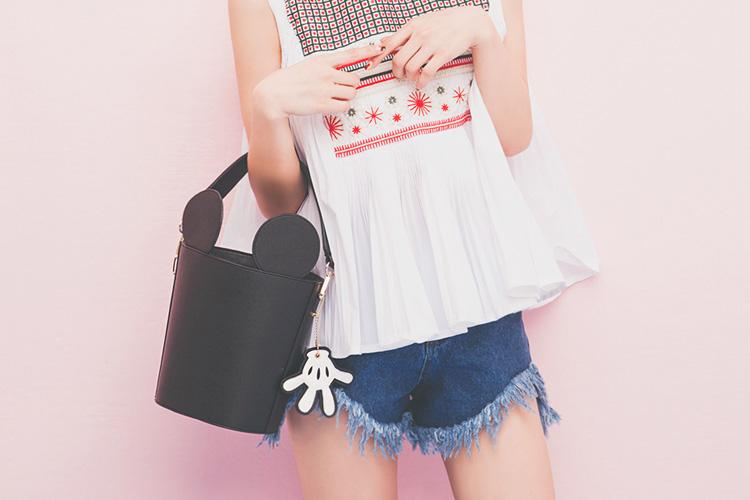 简单到不行的水桶包,要想俘获时髦美少女的芳心,不卖点萌怎么行!两只生动的米奇耳朵,硬是从“水桶”边上长了出来,配上可爱的小手掌,背起来轻盈的身材,“肚量”可是大到惊人哦!