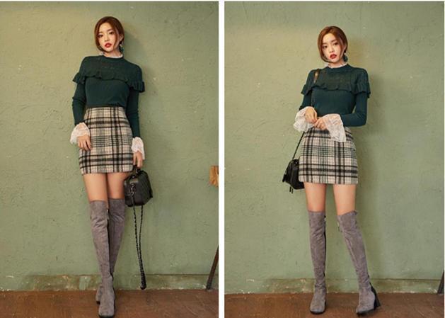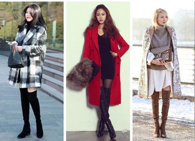 韩版宽松中长款外套,有着非常好的拉长身形的效果,这个时候再搭配一双过膝长靴,把整个人的腿都拉长了,矮个子女生也可以很显高。