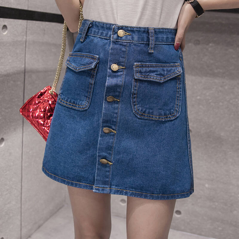 2017夏季牛仔短裙口袋拼接牛仔裙半裙 牛仔蓝 XL