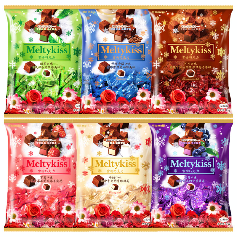 明治喜糖,为幸福锦上添花。6种口味不同包装。适合一盒中正好放6粒装哦。秀气方形巧克力,花朵图案包装,更添喜气。浓浓夹心,相当美味哦!