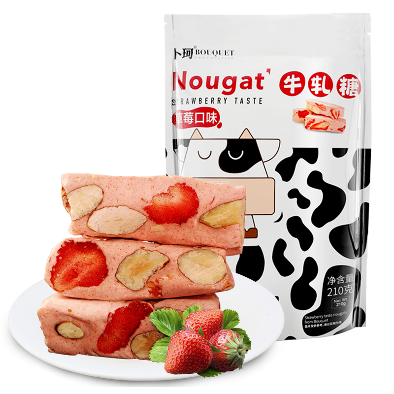 卜珂草莓味扁桃仁牛轧糖210g 牛奶休闲喜糖果婚庆零食品上海特产