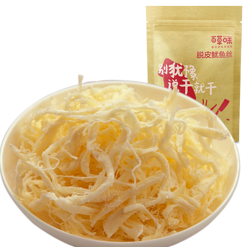 满减【百草味-白鱿鱼丝80g】休闲零食小吃特产 即食手撕海鲜香辣