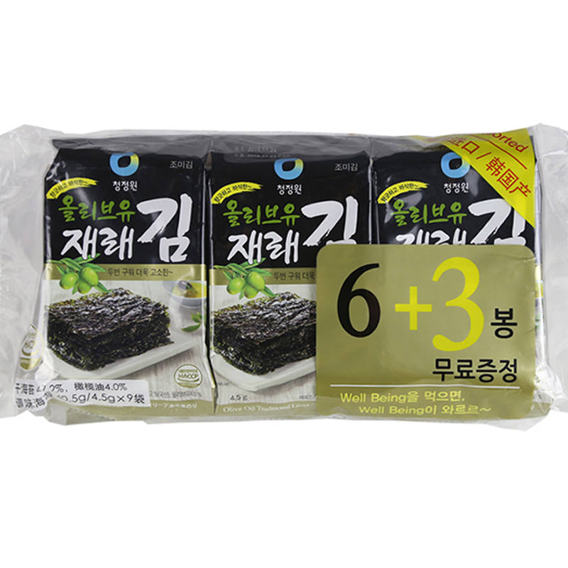 【天猫超市】韩国进口零食清净园橄榄油传统海苔40.5g/包紫菜包饭