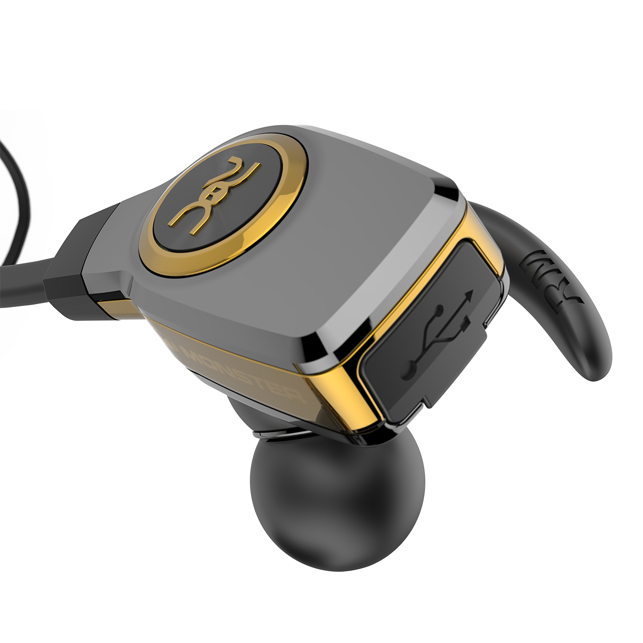 MONSTER携手C罗联合推出,酷炫黑金外观,创新电路与轻薄单元设计,佩戴更轻巧自如。运动耳翼设计,防汗防滑,剧烈运动不易脱落。无线蓝牙连接,低功率消耗,延长续航时间。