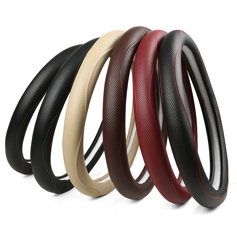 方向盘是开车的时候除了座椅之外跟人体接触最多的部分了,这一款方向盘把套采用真皮材质尽心制作而成,让你的方向盘在手里握着手感更好更方便,耐用、防滑、不产生有害气体,更让您倍儿有面子。