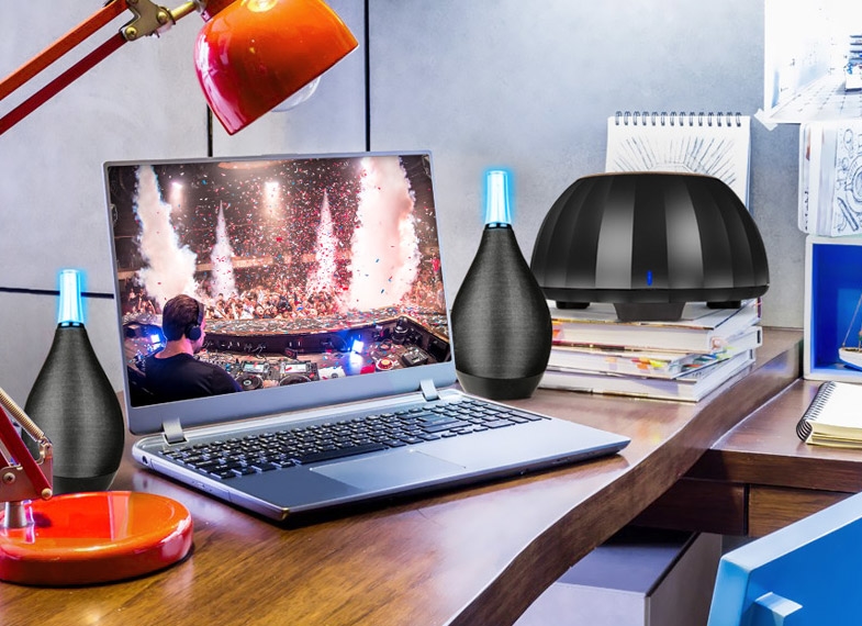 很多人喜欢晒桌面,如何设计出一个井井有条而有美观大方的桌面,是他们孜孜不倦的追求。在这种情况下,多媒体音箱通常占用空间面积比较大,如果桌面尺寸有限,真的是不那么好安置妥当,所以迷你桌面音箱是个不错的选择。