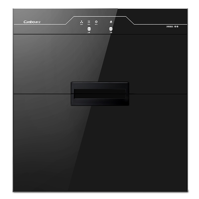 消毒柜上下层,上层物理热力灭菌带烘干,下层高温消毒带烘干,下层远红外经高温消毒,适合耐高温餐具,125度高温物理杀菌,穿透力强,摒弃化学臭氧消毒采用新一代净味物理杀菌。