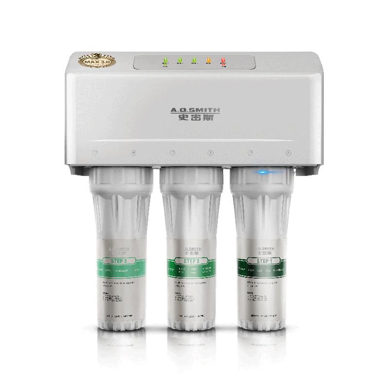 同样是A.O.史密斯的家用净水器,与上面那款不同的是,它搭载了5级高效反渗透净化系统,同时它还有智能滤芯更换提示,实时掌控滤芯试用状态,智能防漏水保护,为您监控着橱下的用水环境,避免了细菌的滋生。