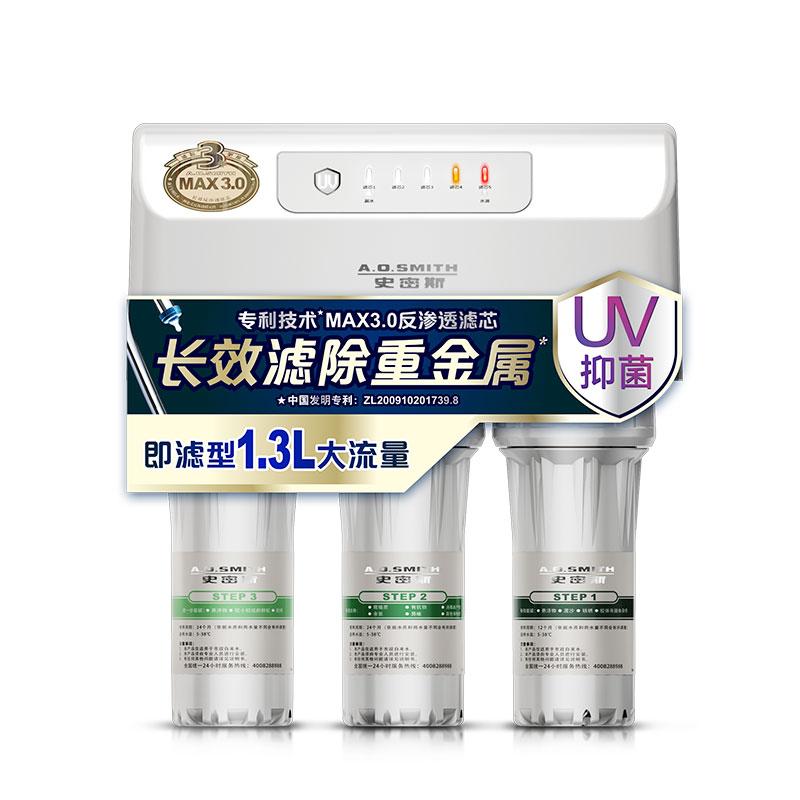 A.O.史密斯的这款厨房家用净水器采用了6级高效反渗透净化系统,其中增设了UV紫外线抑菌系统,给饮用水提供了双重安全防护,能有效防止重金属的污染,保障了家人的用水健康,同时即滤即饮设计,无需长时间等待便能饮用到新鲜活水,也避免了传统储水箱储水的二次污染问题。