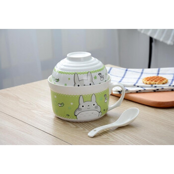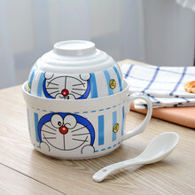 1、可爱陶瓷碗一人食餐具套装泡面饭盆成人好看单个韩式套碗带盖把手 叮当猫A款式