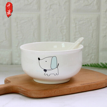 3、陶瓷碗可爱卡通家用吃饭碗个性12生肖米饭碗单个定制logo抖音抖音 单个装-狗(送同款1勺)