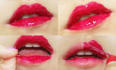 现在流行撕拉式唇,但请撕拉的时候对自己好一点,别把皮都给撕拉了起来,那时候估计鲜血就可以直接当唇红了,口红都能省!