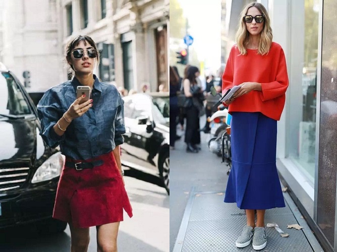 自古红蓝出CP,在穿衣配色应用中,两个看似冲突的色系往往能冲撞出美丽的火花。红色的上衣配合蓝色半裙,在暖系中展现冷色的气场,格调颇高。同理,牛仔蓝棉麻衬衫+红色开叉裙也能穿出强烈的视觉效果。
