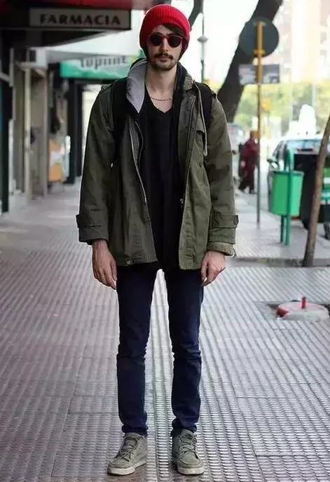 当气温更低的时候,选择保暖的外套更合适。牛仔裤搭配军绿色外套,温暖又时尚,内搭黑色T恤,真是相当新潮呢。