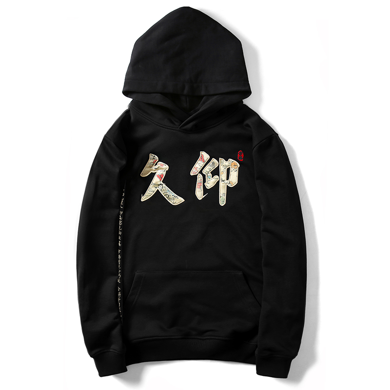 中国风创意文字幸会久仰刺绣套头连帽秋季新款宽松大码外套卫衣男