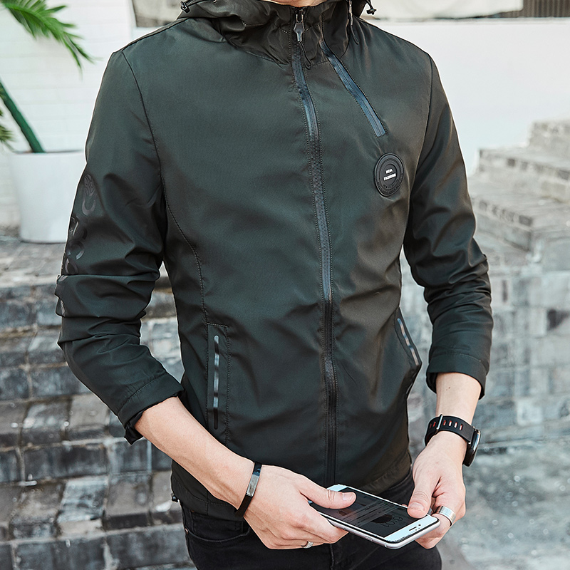 2017秋季新款男士夹克修身连带帽外套男装衣服潮男青年休闲薄褂子