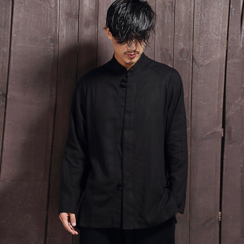 秋季亚麻长袖衬衫男复古休闲衬衣潮男中国风男装短袖中式唐装上衣