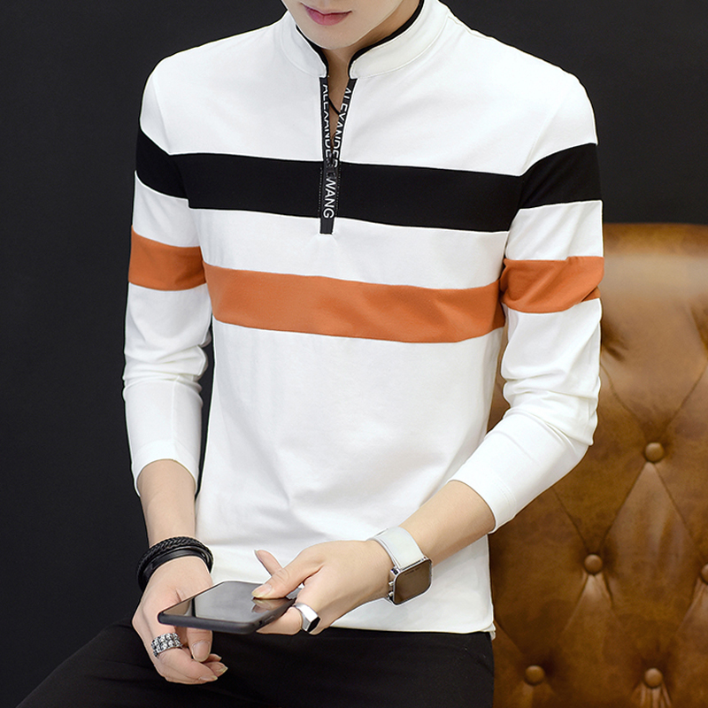 男长袖t恤修身 2017秋装新款男士秋季小衫个性潮男衬衫领薄款丅恤