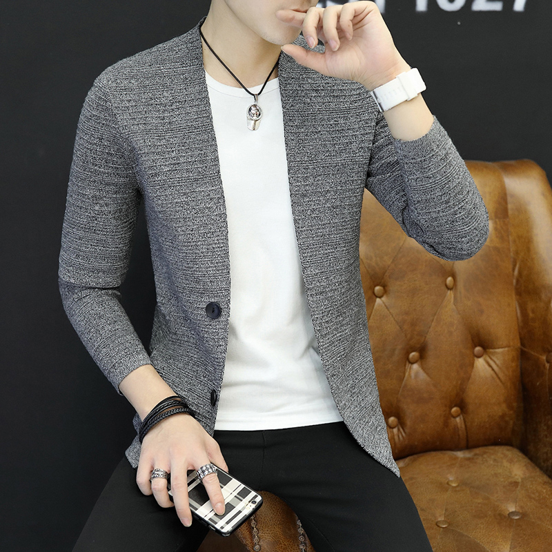 男装秋冬短款针织衫男韩版修身外套时尚青年男士开衫毛衣潮男上衣