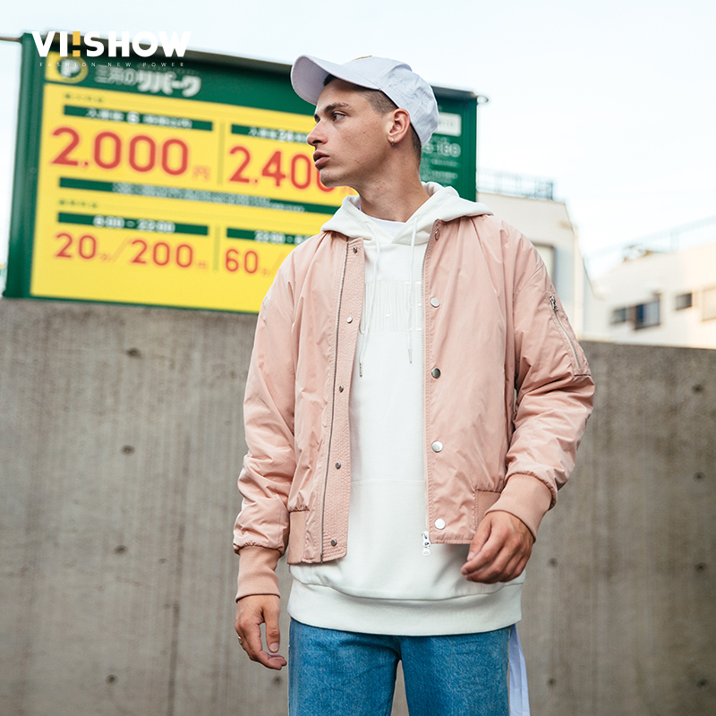 VIISHOW2017秋装新款夹克 粉色圆领棒球服短款欧美简约潮男青年