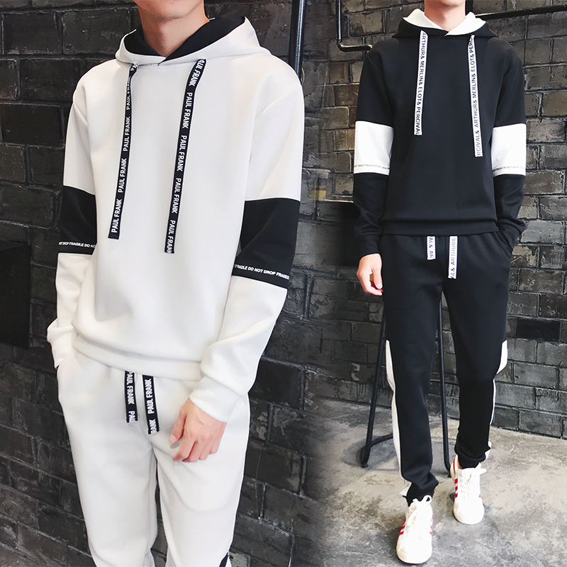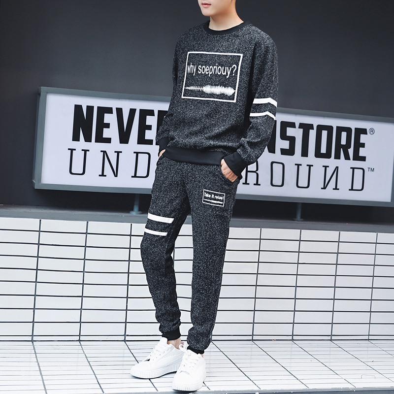 秋季男士长袖套装修身休闲韩版潮流潮男2017新款网红社会精神小伙
