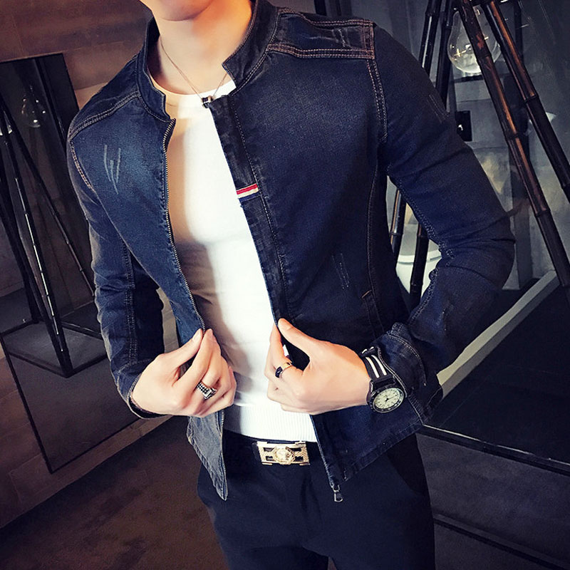 2017秋装新款男士牛仔夹克韩版修身立领外套潮男薄款夹克衫牛仔衣