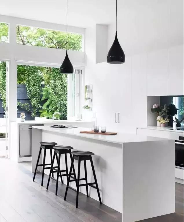 禁欲系的白让人沉醉,带来一股清凉而又纯净的气息,既凸显了厨房的洁净,又彰显出现代简约之美。