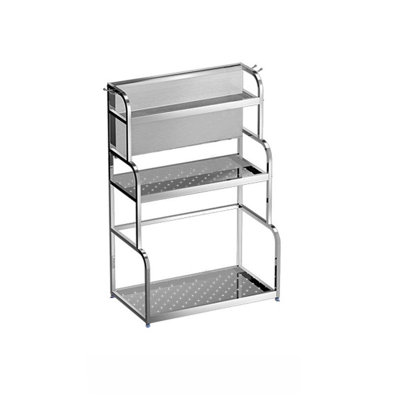 喜爱烹任的人们家里一定有非常多的厨具以及餐具,不锈钢的置物架让杂乱的物品有了合理的容身之处;整体选用不锈钢的材质结实耐用,延长收纳架的使用寿命;挡刀板的防护设计,带来更加安全的生活空间;合理的布局设计,摆放在小户型的厨房中带来更加整洁的空间环境。