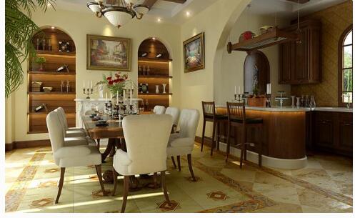 不管独立式还是共用式的都要兼顾到空间中风格的统一。独立式可发挥的余地多一些可以增加一些吧台、酒柜等设施让其功能更完善。共用式的设计要点就是和相邻空间协调,又要从相邻空间中区分出来,显示使用功能的不同。