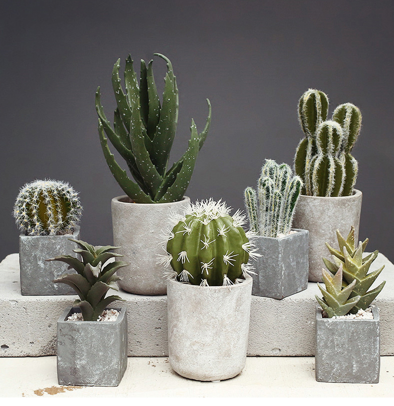 创意北欧家居装饰品水泥花盆多肉仙人掌仿真植物盆栽摆件客厅摆设