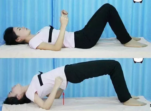 2.五点支撑。背部支撑力一旦不足,身体就简略发生生硬、椎间盘功用退化。主张每天睡前做五点支撑练习:仰卧在床上,屈肘屈膝,以头枕部、双肘尖、双足底着床,将臀部及腰背部极力抬离床面,3~5秒为1次,每天50次。