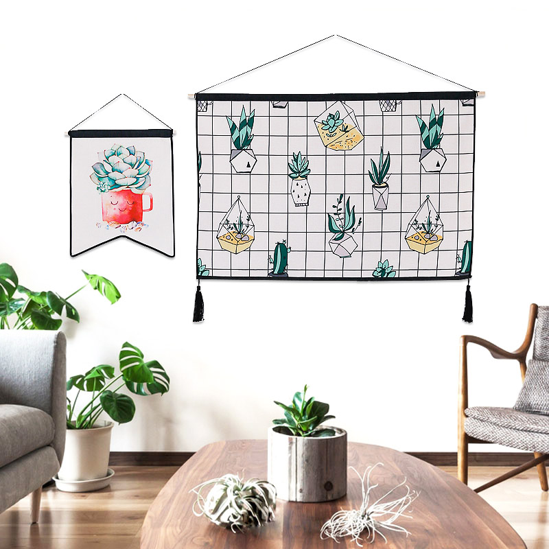 美式绿植客厅装饰挂画 遮挡电表箱开关挂毯壁毯 流苏挂布背景布