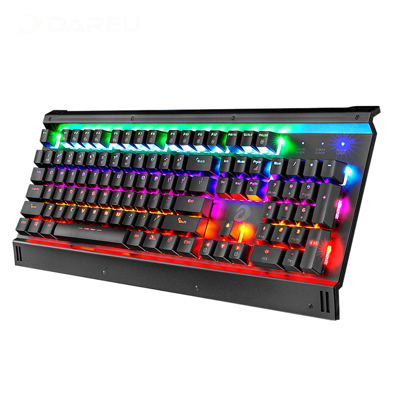这是一款达尔优品牌的机械键盘,支持全键无冲并带有非常炫酷的背光灯效,如呼吸灯、跑马灯、波浪纹、水滴纹等,增添了游戏气氛。它有黑、青、茶、红四种轴,能满足不同人群需求,加上是悬浮式机身使得键盘手感优良,适合专业电竞玩家。