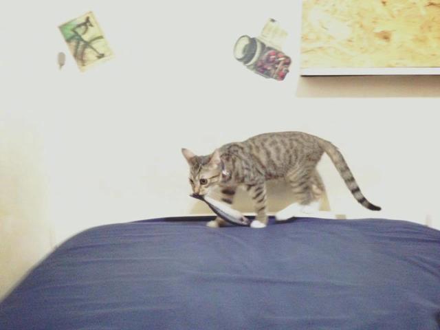 从此以后,猫咪的眼里面没有其它的东西了,走到哪里都是将小鱼叼在嘴里面,生怕别人给它偷走一样,猫咪每天这样的拖着小鱼走来走去,真的是非常的有趣,有时候它还特意将小鱼藏起来,生怕主人发现了,笑死了。