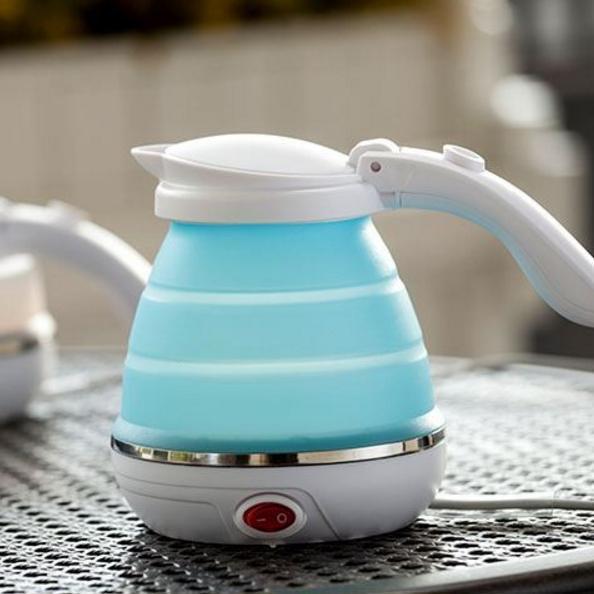 可折叠电水壶,放在包里一点都不占位置,双电压全球通用,特别适合旅行、出国使用,3-5分钟水就能烧开。