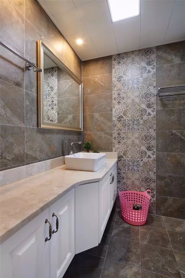 卫生间的小花砖用得恰到好处,使这个小空间多了一些文艺复古气息。